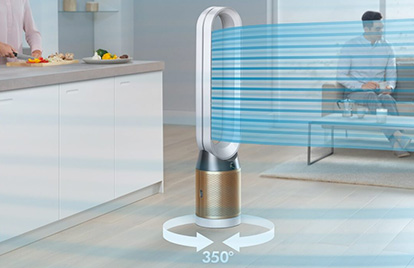您可以將二合一涼風智慧空氣清淨機的擺動角度設定為45°至350°。