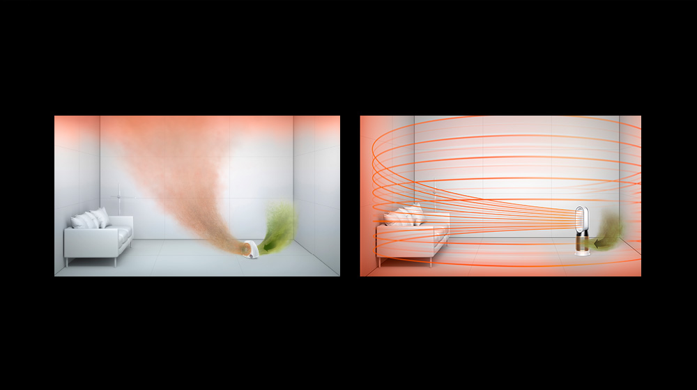 Dyson空氣清新機是為真實家居環境而設計,確保淨化空氣能有效循環吹送到每一個角落。