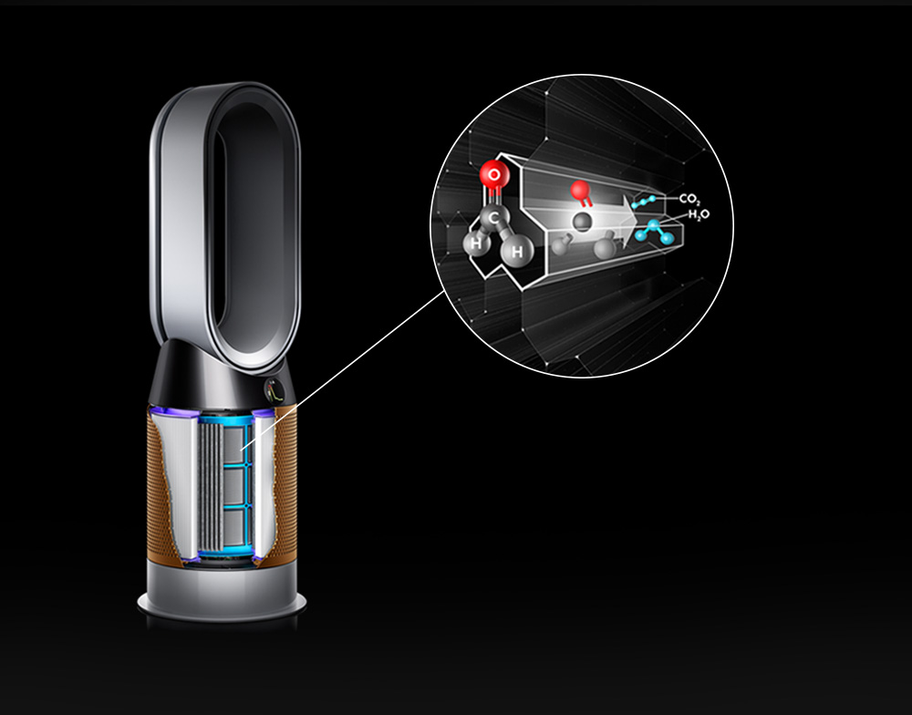 Dyson Cryptomic™ 分解甲醛科技具有獨特的催化塗層,結構與錳鉀礦相同。 含有數十億個原子大小的隧道,是捕捉和消除甲醛的最佳尺寸和形狀,可將其分解成微量的水和二氧化碳。