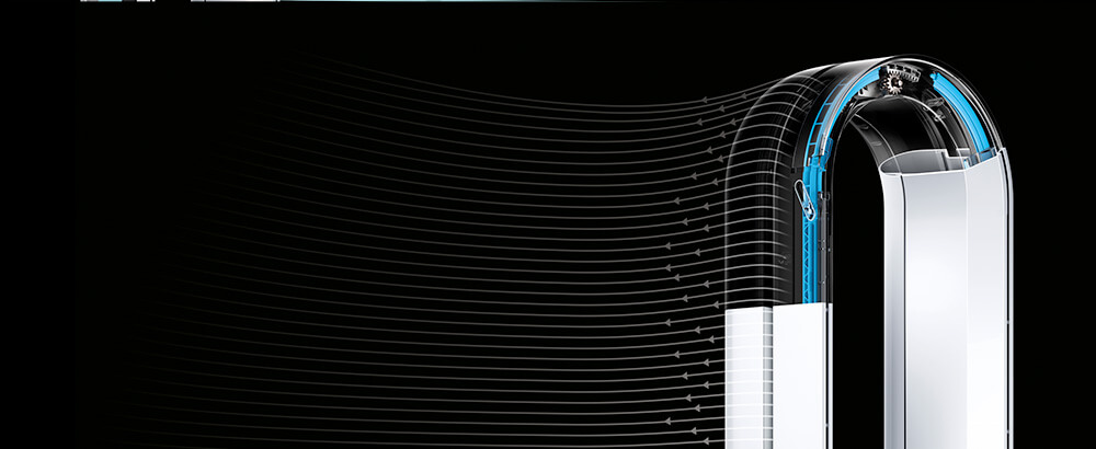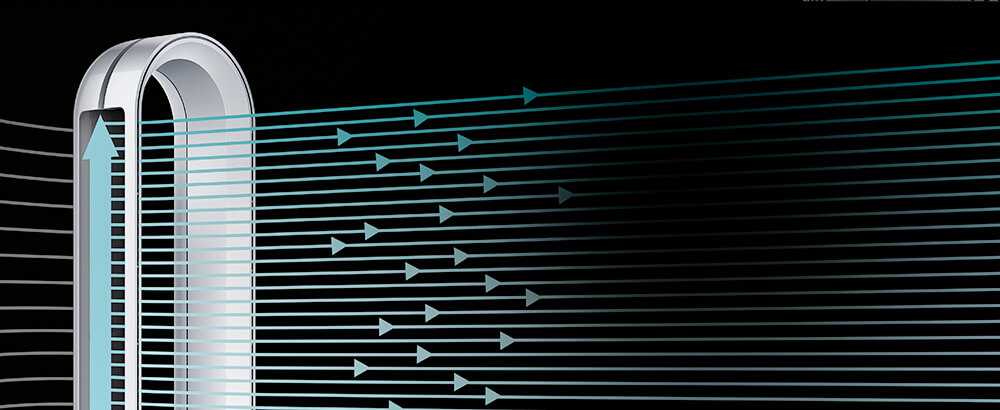 Air Multiplier™ 氣流培增技術的強力噴射氣流帶動空氣循環,環迴全屋吹送淨化空氣,每秒產生超過290公升平穩而强勁的氣流。