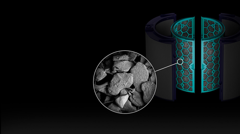 透過氧處理的碳晶密集層不僅更透氣,更增加碳的接觸面積,能增強活性碳吸收效率,有效分解包含二氧化氮、甲醛與苯等有害氣體。