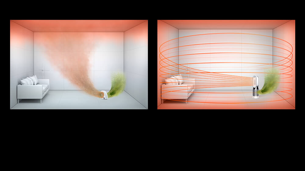 Air Multiplier™ 氣流倍增技術每秒吹送 290 公升柔順強力的氣流 – 讓清淨的空氣循環全室。3