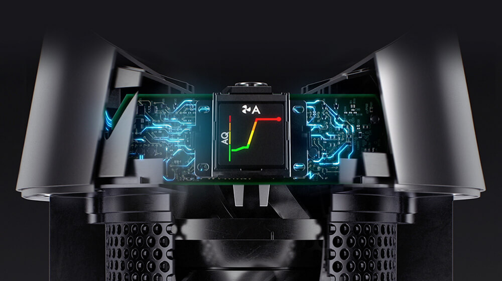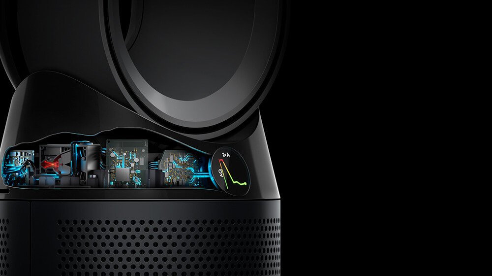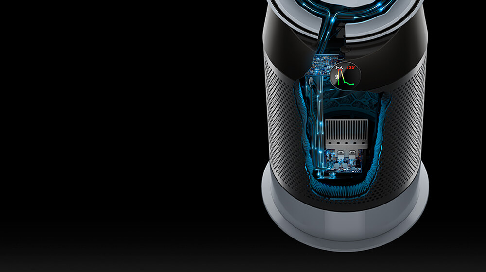 Dyson Pure Hot+Cool™三合一涼暖空氣清淨機配有三個智慧型感應器,自動偵測空氣品質。利用獨特的演算法,可以提供即時室內空氣品質報告。