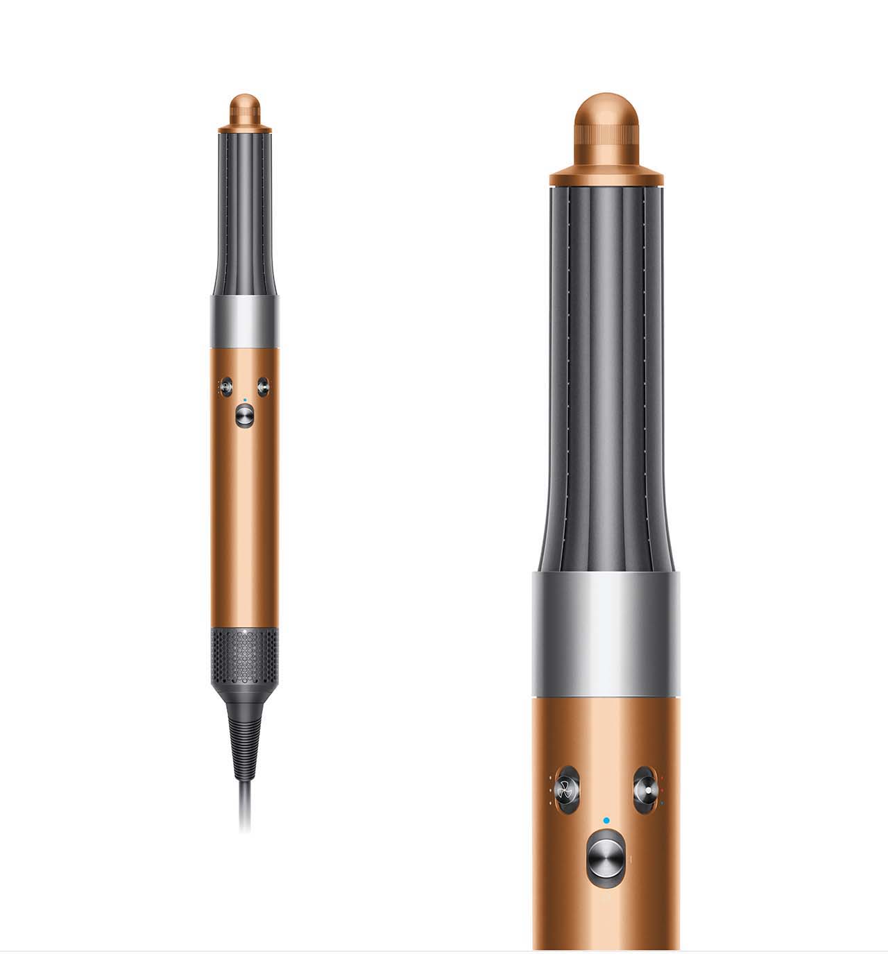 長型髮捲專為長度到鎖骨以下的頭髮設計。 對於鎖骨以上的長髮,建議使用較短的升級版30mm Airwrap™ 髮捲和升級版40mm Airwrap™ 髮捲。 長型和短型髮捲都適用於鎖骨以上或以下的長髮,但如果您根據頭髮長度使用建議的髮捲,效果會更好。