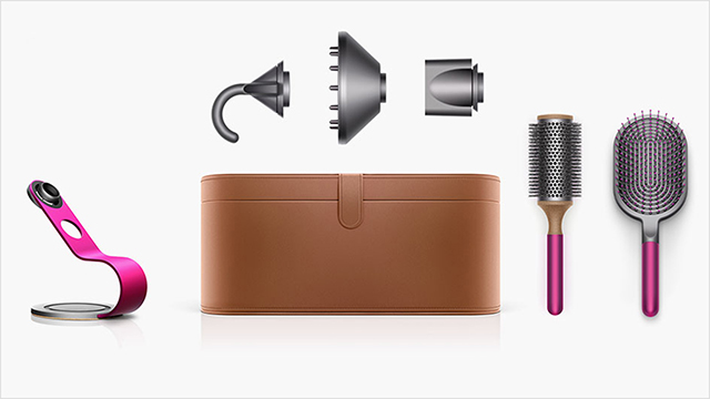 Dyson Supersonic™ 吹風機的磁性造型配件及禮盒。