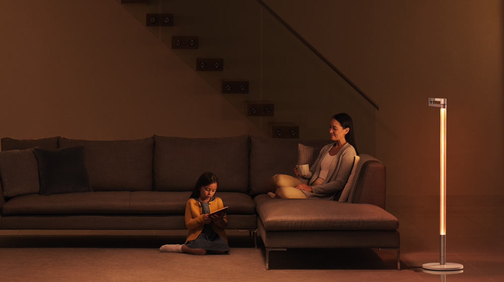 是的。這盞燈具可以追蹤當地日光,自動降低早晨與傍晚時的藍光。不管任何時候,在放鬆模式與氣氛照明下,這燈具會隨即減少藍光。