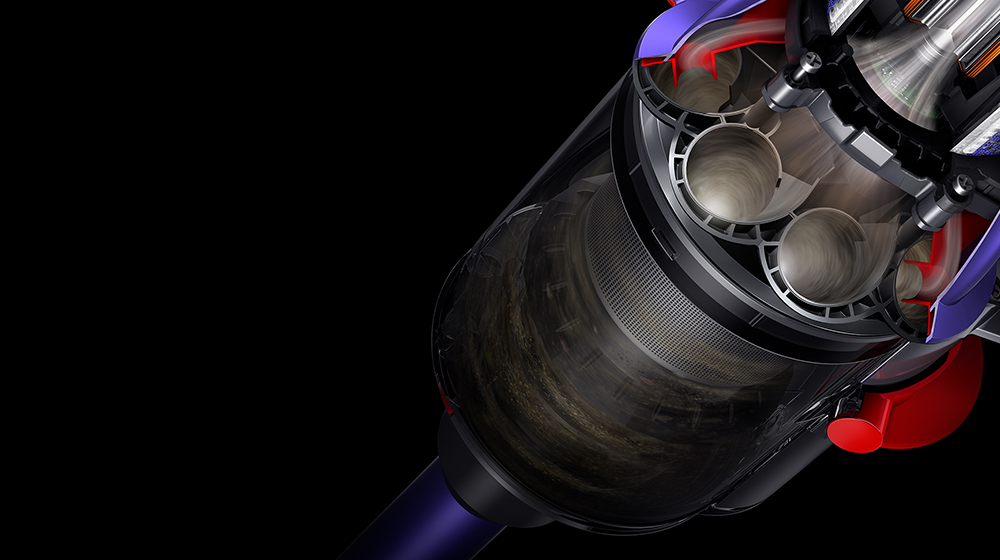 輕量氣旋組件擁有11個氣旋,可產生超過100,000g離心力,採用全新滾動式設計,吸力不減。 因此能清除氣流中的更多微塵與污垢。