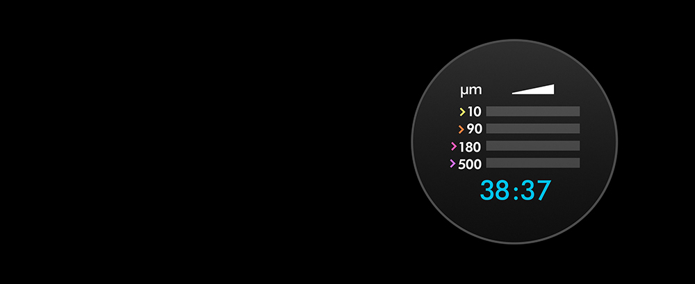 集塵筒過滿可能會降低吸力並影響微粒數量的準確度。為了保持吸力,碎屑達到MAX刻度時,請立即清空。