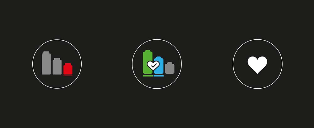 顯示綠色勾號時,表示電池已充滿電,可供使用。